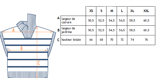 Tricoté et confectionné à Roanne. Taille du S au XXL. Disponible en Bleu/Ecru ou Ecru/Bleu